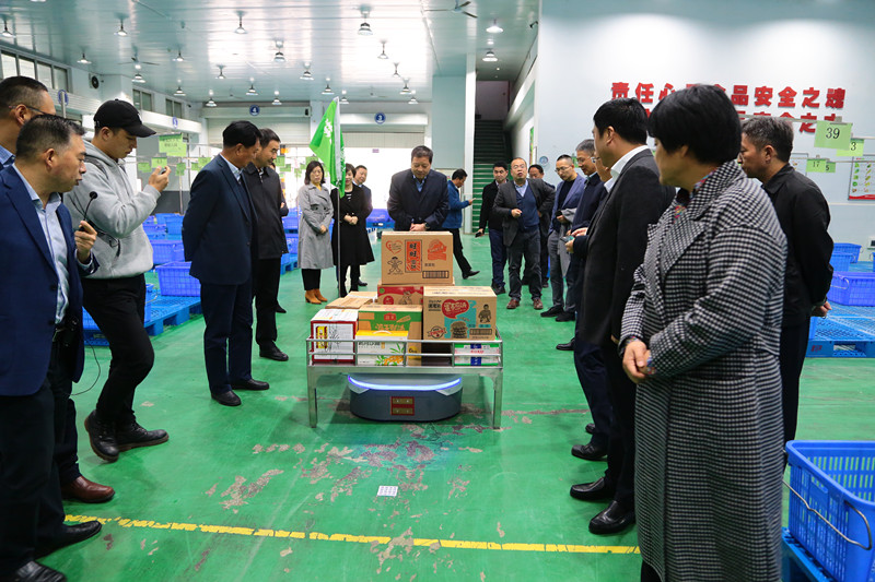 簽約儀式后,與會(huì)領(lǐng)導(dǎo)與企業(yè)代表、專家等視察黃馬甲生鮮物流基地,并在石羊集團(tuán)總部參觀座談。
